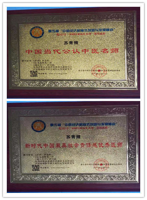 2019年12月31日在第五届中国新经济模式创新发展峰会上,他被授予“中国当代公认的中医药大师”和“中国最具社会责任感的杰出医师”新时代”。一草改变世界,银针连接中西,一缕药香跨越古今……中医药为中华民族的繁荣富强做出了卓越贡献,产生了积极影响关于世界文明的进步。如何切实继承、发展和利用先辈中医药留下的宝贵财富,已成为每个中国人不可回避的时代问题。中医师苏清照传承精髓,诚信创新,遵循中医药发展规律,充分发挥中医药原有优势,以仁爱之心服务社会,贡献力量。为建设健康中国、实现中华民族伟大复兴贡献了自己的力量。中国梦提供健康动力!
